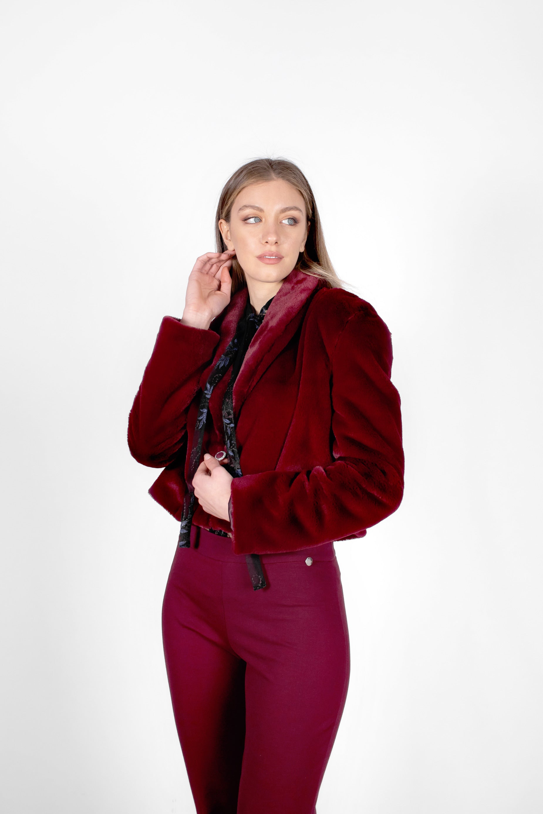 Copri spalle di pelliccia lunghezza crop con manioca lunga ed allacciatura con gancetto centrale sul davanti