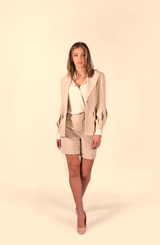 Giacca monopetto donna con tagli verticali sul fondo manica